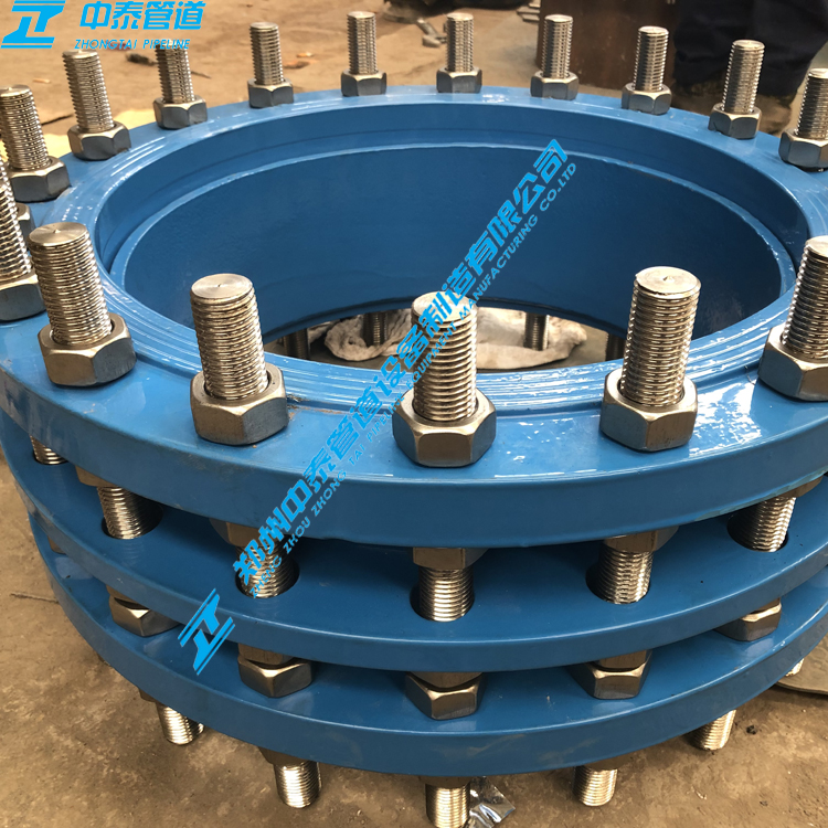 傳力接頭用于給排水和污水處理等行業(yè),主要作用于水泵與閥門和管道之間的連接,它在管道運(yùn)行中有一定的多向位移作用,可以緩解管道運(yùn)行中的盲板推力,對管道起到一定保護(hù)作用,特別是對管道的安裝和維修提供了極大的便利,但是在水泵出口處和管道轉(zhuǎn)角處應(yīng)采用傳力接頭,因?yàn)閭髁宇^通過傳力螺栓(即全絲螺栓)能把啟泵時(shí)的盲板推力傳導(dǎo)到泵和管道各部位,避免推力集中于管道或泵的近端發(fā)生沖擊力損傷設(shè)備。